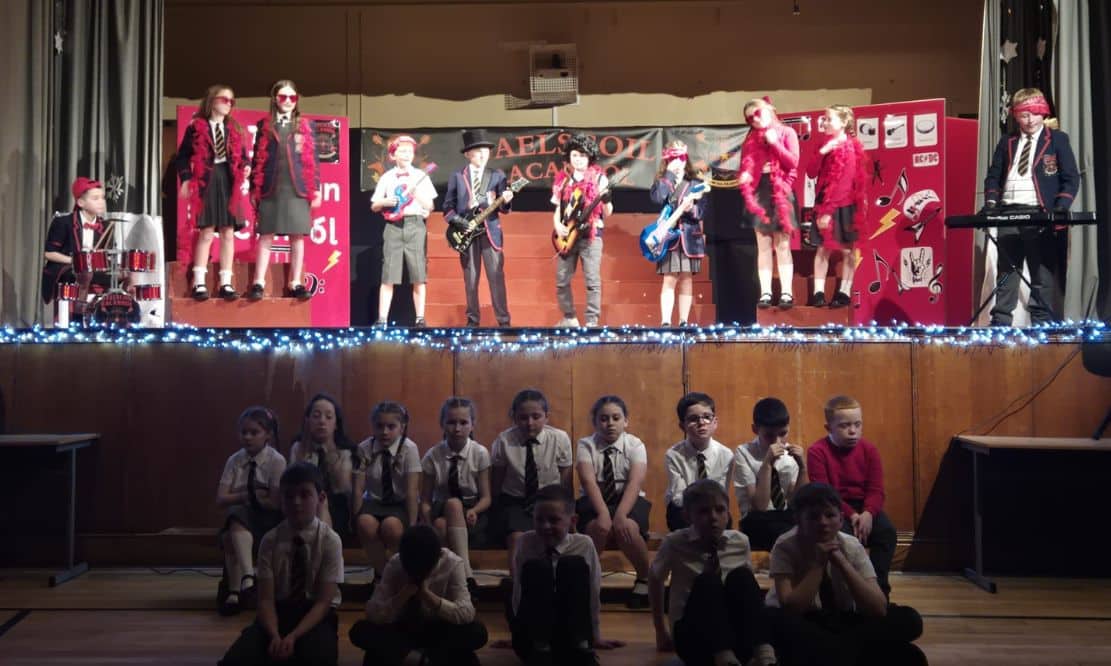 The Key Stage 2 / Eochairchéim a 2 pupils put on two full drama shows running across two nights. The cailíní and buachaillí in the school’s Bunscoil put on a magnificent version of ‘School of Rock’ which thrilled everyone in attendance over both shows.