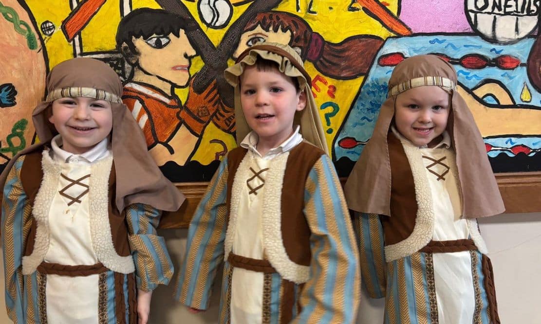 The Rang a hAon pupils, accompanied by Rang a Ceathair, put on a fabulous ‘Scéal na Nollag’ as Gaelige (Christmas Story) to a packed hall.