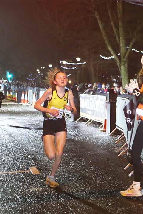 In the women’s 3km, Emily Haggard-Kearney took control well before the final lap. The Wirral-based athlete, who competes for Ireland, broke away by halfway and was unchallenged thereafter, winning in 9:07.
