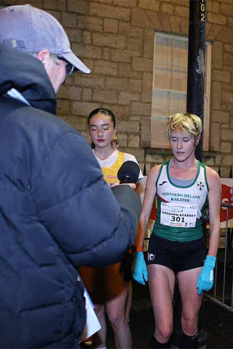 In the Open 3000m, Belgrave Harrier William Driscoll took victory in 8:32. Letterkenny AC’s Philip McGee finished second in 8:35, with Holland’s Wannes Van Uytven third in 8:36. Dromore AC’s Russell White, runner-up at the NI & Ulster Cross Country only days earlier, placed fourth in 8:41.