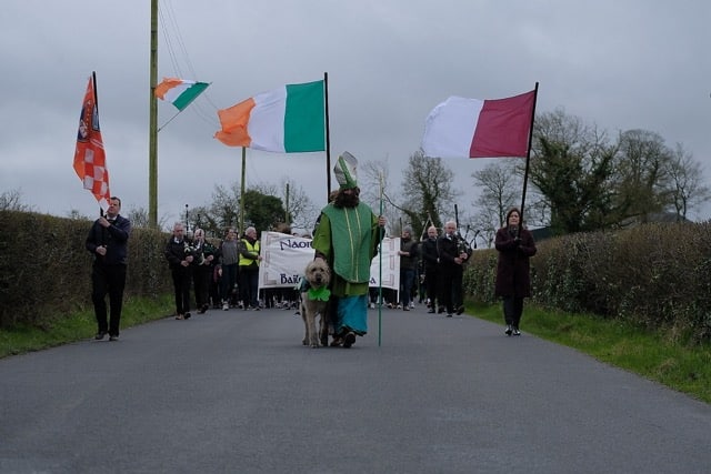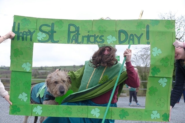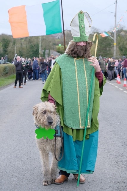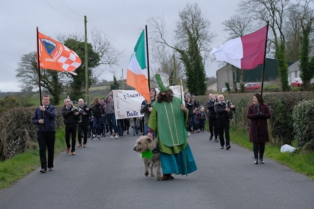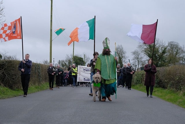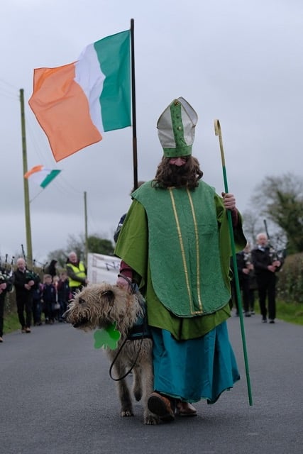 St Patrick leads the St Patricks Day Parade in Ballymacnab
