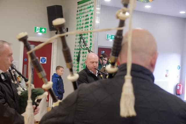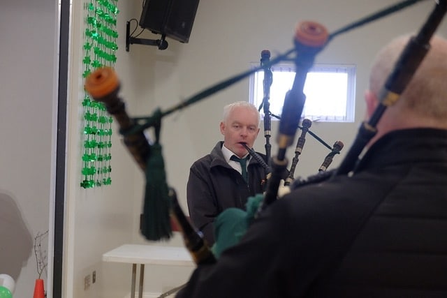 McKelvey Pipe Band tune up for St Patricks Day Parade in Ballymacnab