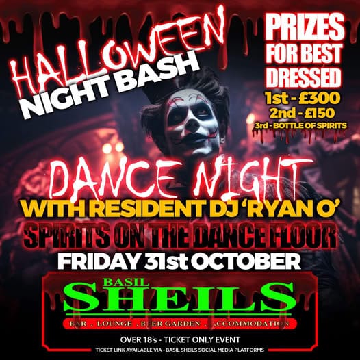 Get ready for a night of spooky thrills and wicked fun at Basil Sheils’ Halloween Party Night!