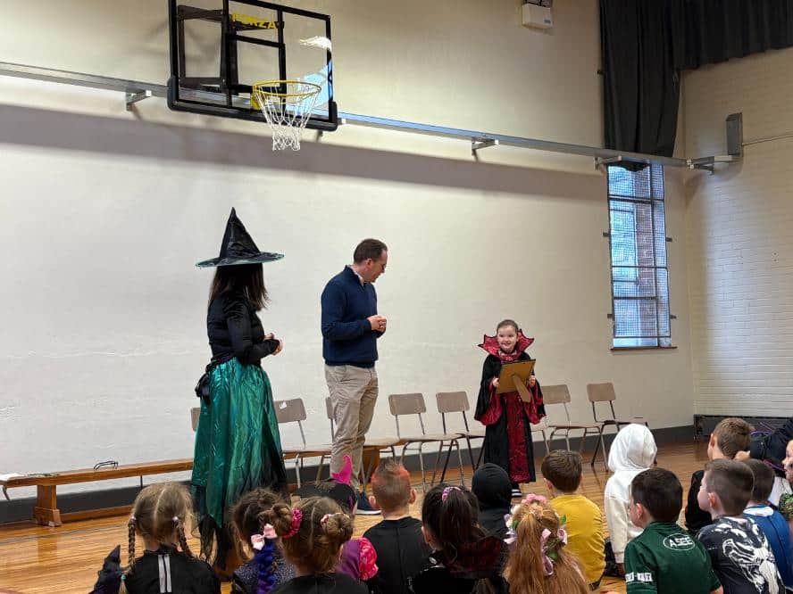 St Malachy’s PS celebrate first school term in new building with Halloween assembly