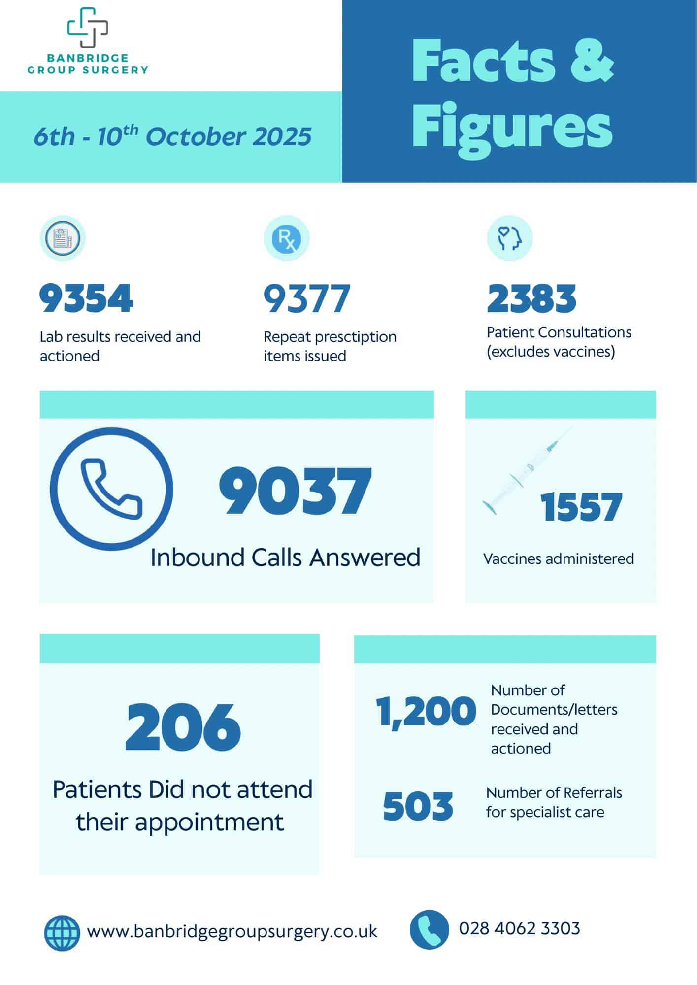 The shocking statistic was shared by Banbridge Group Surgery as part of a collection of data to highlight to their patients the reasons for delays in some areas of service.