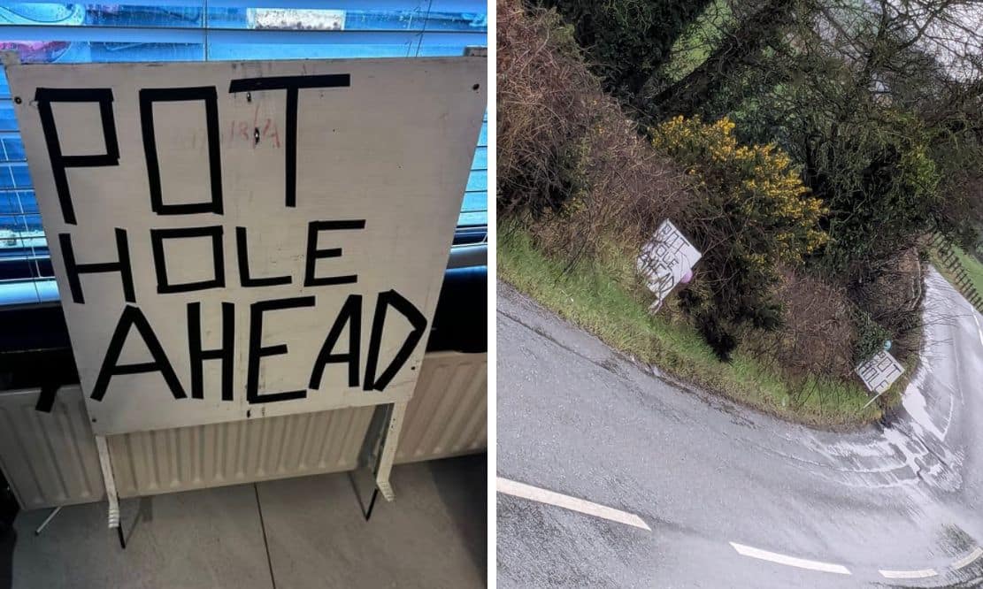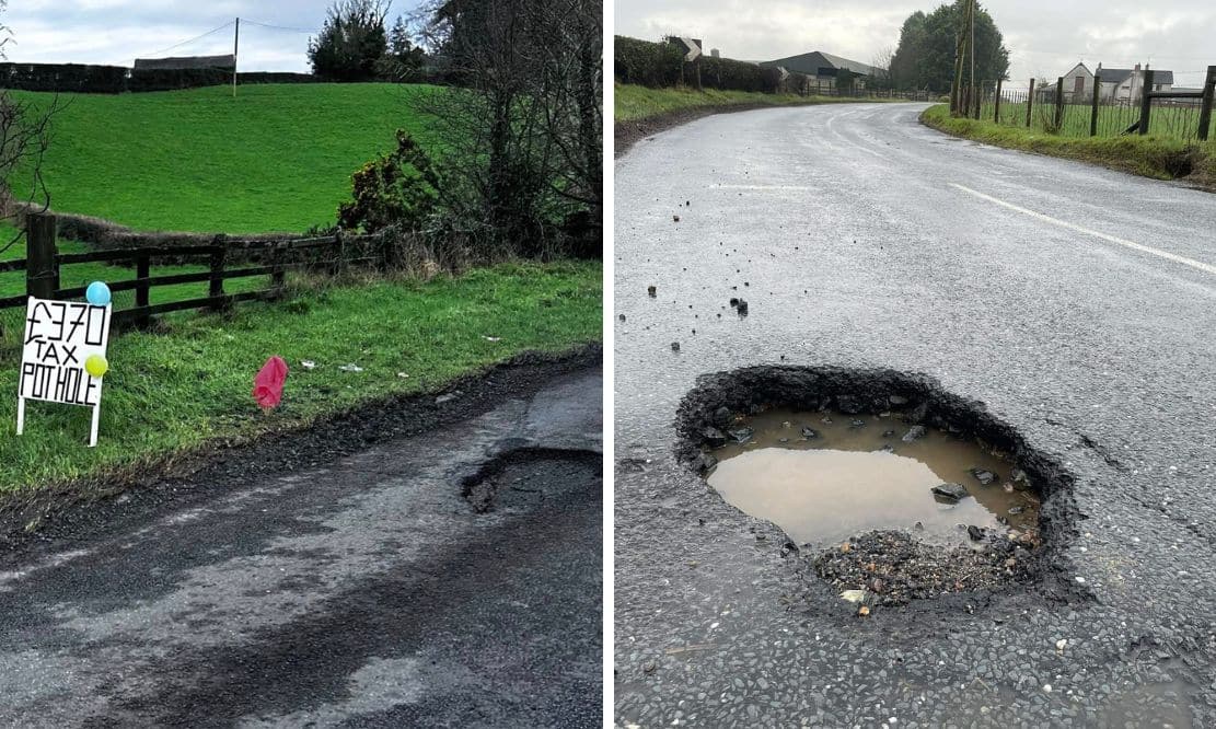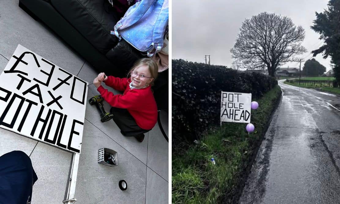 Father and daughter cover Killyman in pothole signs… and the community are ‘holey’ grateful!