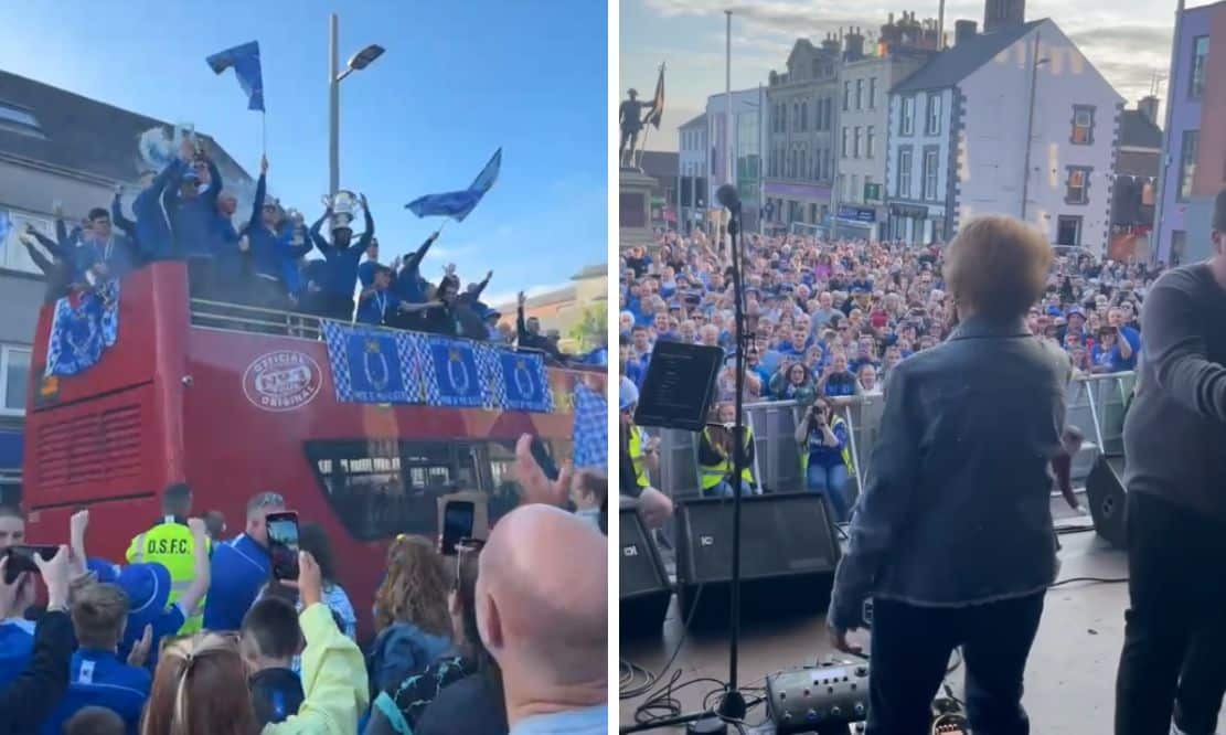 The Dungannon Swifts have celebrated their incredible and well deserved Irish Cup win with an ‘open top tour’ that saw fans descend on the town centre in their droves.