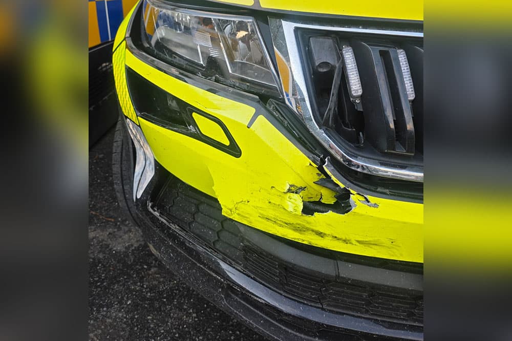 The police vehicle was also pushed by the force of the collision into the rear of a Skoda which had been travelling in front.